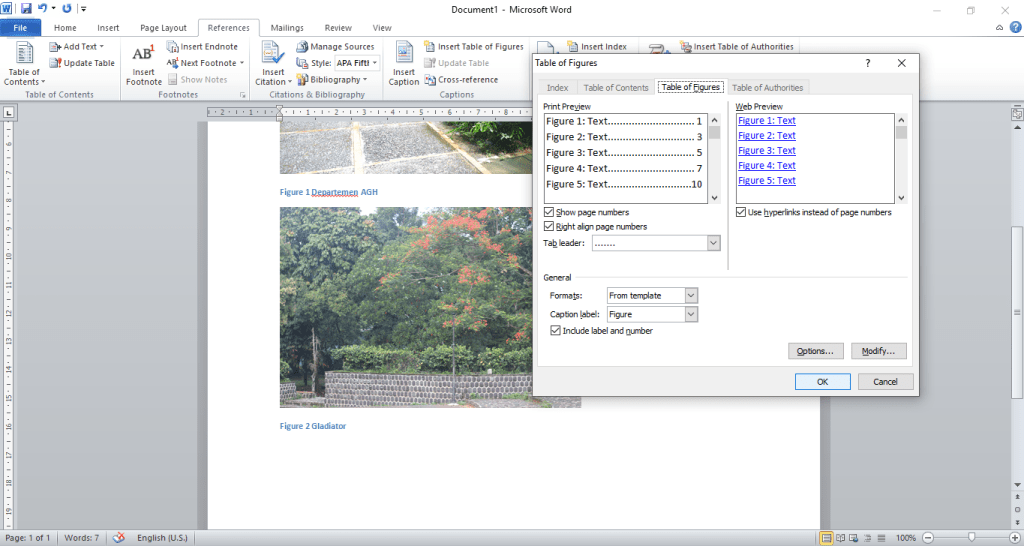 Membuat daftar gambar atau daftar tabel cukup dengan mengklik Insert Table of Figures pada menu References. Setelah itu muncul jendela seperti pada gambar, kemudian atur sesuai kebutuhan temen-temen, terakhir klik ok.